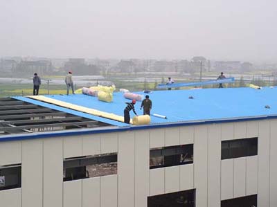 正在施工中的彩钢板