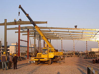 正在吊装中的厂房钢